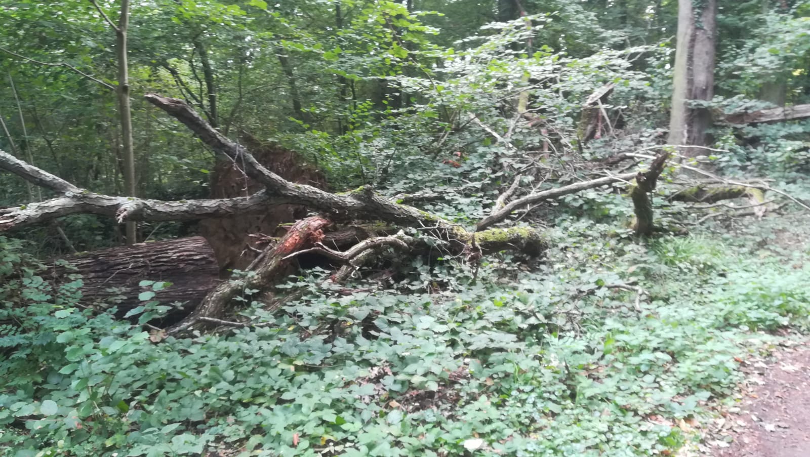 Das Hauptbild hat mir auf den ersten Blick den Ansatz eines Herzens gezeigt. Leider auf dem Bild nicht so gut zu erkennen wie direkt am Baum. Der Baum ist eine Eiche die nun schon zum zweiten Mal vom Sturm erwischt wurde. Beim ersten Mal hat es einen kleineren Ast erwischt und vor ein paar Tagen wurde ein größerer Ast Opfer der heftigeren Windgeschwindigkeiten. Bei Laubbäumen im belaubten Zustand ist halt die Angriffsfläche größer. Die Eiche steht auf einer Wiese. Im letzten Jahr war im Nistkasten ein Hornissenvolk eingezogen. Dieses Jahr habe ich ein Meisenpaar beim Brüten beobachtet. Und was mit der Wiese passieren würde wenn man sie nicht mähen würde seht ihr auf dem nächsten Bild.