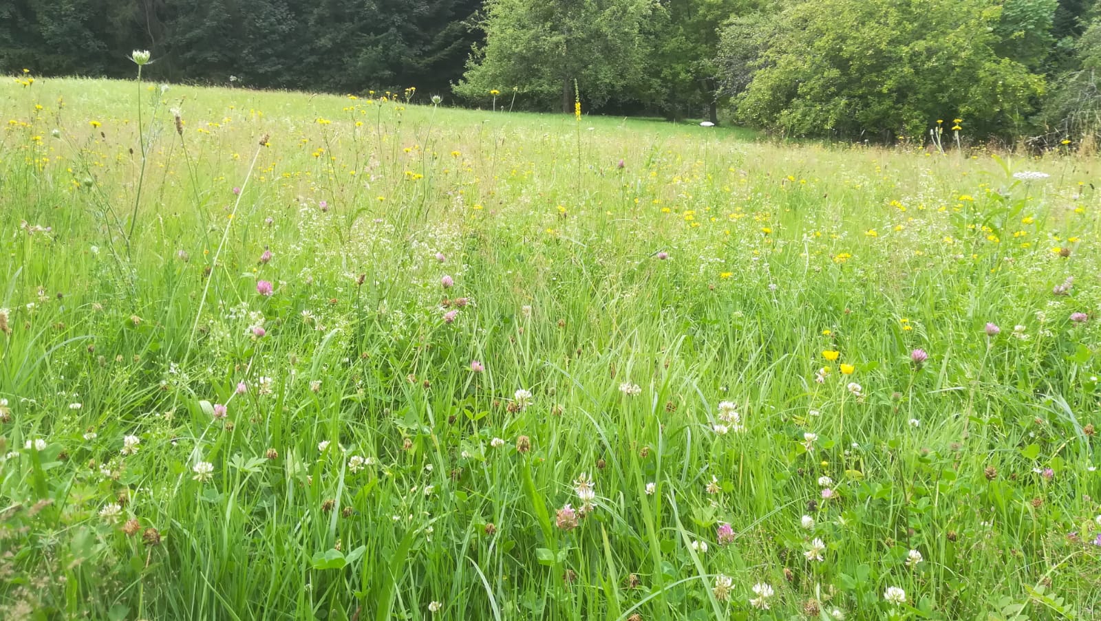 Auf dieser Wiese kann man weit über 20, vermutlich sogar noch mehr Arten von Blütenpflanzen entdecken. Und da ist das Gras noch gar nicht mitgezählt. Manche sehen darin eine Wiese und andere sehen viele Blumen.