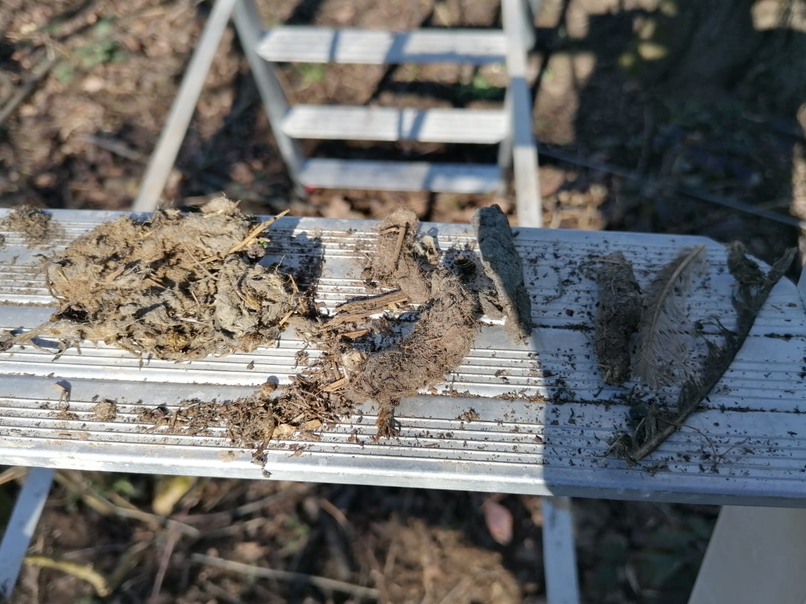 An den vergangenen drei Wochenenden waren wir zu zweit in den Streuobstwiesen unterwegs um kurz vor der "Saison" die restlichen Steinkauzröhren zu kontrollieren. Wir, das ist der hiesige Streuobstmanager und Baumkontrolleur und ich. Wenn mir irgendjemand vor ein paar Wochen erzählt hätte, dass ich mich mal über Gewölle von Käuzen freuen würde, dann hätte ich ihn (oder sie) nach dem geistigen Gesundheitszustand gefragt. Und auch jetzt gerade belustigt es mich doch ein wenig, wie zwei erwachsene Männer ihre Freude an den unverdaulichen Nahrungsresten (Haare, Federn, Knochen usw) oder an aufgefundenem Kot ihre, im wahrsten Sinne, "Scheißfreude" haben können. Um es gleich vorweg zu nehmen, wir haben tatsächlich beides gefunden. Und das obwohl das "Verhören" durch einen Eulenexperten vor ein paar Wochen wenig ergiebig war. Damit ihr euch ein Bild machen könnt hab ich auf dem nächsten Foto ein "Belegexemplar" abfotografiert.